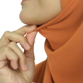 - ANTI-BROOCH with stretchable band below chin