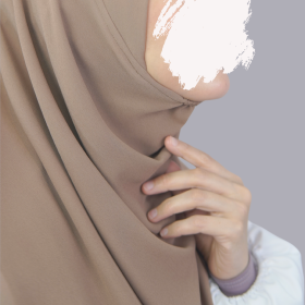- ANTI-BROOCH with stretchable band below chin